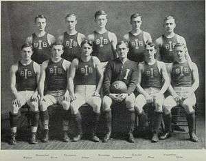 The 1907–08 season saw the third coach in three years take the reins at the University of Illinois. Fletcher Lane was Illinois’ third coach, but lasted just one season. Even though he led his team to a 20–6 record, the university, as well as the athletes, deemed Lane's coaching style as subpar.[1] Lane's team benefited from a long Southern trip in which the team beat several YMCA and club teams from Tennessee, Texas, Alabama, and Georgia. The starting lineup consisted of forwards Albert Penn and H. J. Popperfuss, center Avery Brundage, and guards Thomas E. Thompson and captain M. G. Dadant.[2]