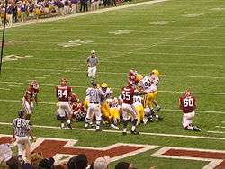 The ninth regulation game of the 2011 season for LSU found the number 1 nationally ranked Tigers against the second-ranked Alabama Crimson Tide in a match called the "The Game of the Century"[22] or the "Matchup of the Year".[23] Both teams were undefeated and both were also coming off a bye week; viewed as important to the BCS Championship Game as the "inside track" by many of the sportswriters, the press built up the game in a Super Bowl-style atmosphere. Ultimately, the game came down to field position and a series of field goals as the top-ranked defenses of both teams prevented any touchdowns. Alabama missed three field goals and a fourth was blocked during regulation, leading to a 6–6 tie heading into overtime. On the first possession of overtime, Alabama again missed a field goal from 52 yards out, only to watch LSU earn the win on the next possession with a chip-shot field goal. As a result, it was the second-lowest scoring match-up between number 1 and number 2 teams in the history of the NCAA, with a 9–6 decision.[24] For the first time in BCS National Championship history, two SEC teams, number 1 LSU and number 2 Alabama again faced each other in the National Championship Game. Alabama won the game, 21–0. The SEC-only title game added impetus to the push for a national playoff system and hastened the death of the BCS system as implemented up to that time.[25]