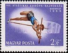 Men's pole vault at the 1966 European Athletics Championships on a Hungarian stamp