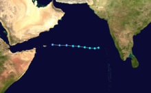 From November 9 to the 11th, Tropical Storm Three existed over the open Arabian Sea, dissipating due to vertical shear.