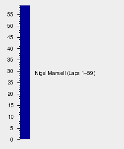 At the front it was all Mansell as the Englishman recorded his second win in succession, while rival Senna ran out of fuel on the last lap, he would be classified fourth. Berger ended up second, followed by Prost, Senna, Piquet, and Bertrand Gachot's Jordan. Mansell now trailed Senna by only 18 points and momentum was on his side.