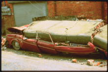 Damage estimates were as high as $75 million, one third of which was due to bridges and roads, and the remainder of the costs were structure-related. The American Red Cross compiled damage statistics in the county and the totals included 906 damaged homes and apartments. Almost half of those were severely damaged and an additional 200 homes were destroyed. In Petrolia, the post office, three businesses, and 44 homes were destroyed, and another 68 residences were damaged. In Ferndale, 29 homes were destroyed and 126 were damaged, along with 51 businesses. In Rio Dell, 127 buildings were damaged or destroyed. With 98 homes and 41 businesses experiencing some form of damage, the city of Fortuna experienced losses totaling $3.8 million. Eureka and Arcata (25 miles (40 km) north of the Eel River valley) saw light damage and no injuries, while the unincorporated communities of Weott and Carlotta reported damage of less than $2 million combined.[11][12]