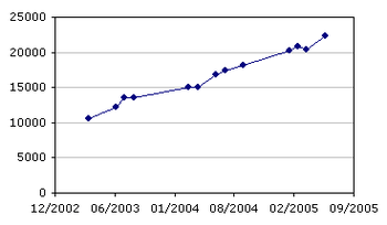 Argentina's recovery suffered a minor setback in 2004, when rising industrial demand caused a short-lived energy crisis. Argentina continued to grow strongly, however, and GDP jumped 8.8% in 2003, 9.0% in 2004, 9.2% in 2005, 8.5% in 2006 and 8.7% in 2007.[71] Though wages averaged a 17% annual increase from 2002 to 2008, and rising 25% in the year to May 2008,[73] inflation ate away at the increases: 12.5% in 2005; 10% in 2006; nearly 15% in 2007, and over 20% during 2008. The government was accused of manipulating inflation statistics, and The Economist began to turn to private sources instead.[74] The surveying volume prompted the government to increase export tariffs and to pressure retailers into one price freeze after another in a bid to stabilize pricesfareviews but wuth little effect.