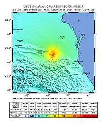 - ↑ "Magnitude 5.3 - Caucasus Region, Russia". USGS. October 11, 2008. Retrieved 2008-10-12.
