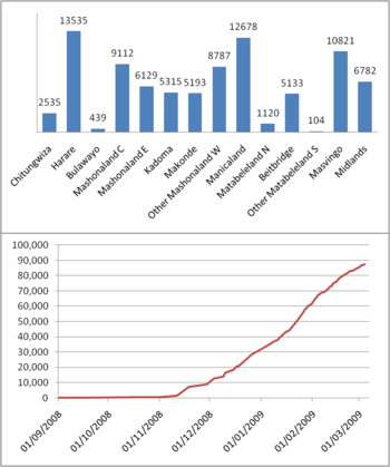 - 1 2 3 United Nations Office for the Coordination of Humanitarian Affairs (24 November 2008). "Daily Cholera Update". Retrieved 27 January 2009.