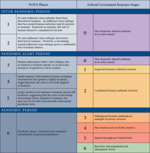 Congruent U.S. Government and WHO Pandemic Response Charts.