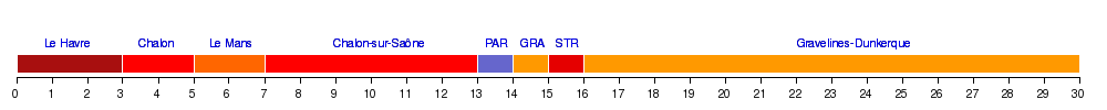 | 6 | Le Mans | 30 | 16 | 14 | 2202 | 2200 | |