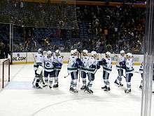 With a week remaining in the preseason, Vancouver assigned Eriksson to the Comets giving Läck the back-up goaltender job. Eriksson made only one appearance in the preseason and stopped all nine shots. The move was seen as a way for Eriksson to have more playing time while adjusting to the smaller ice surface in North American rinks.[49] In the battle for the sixth defenceman spot, Alberts struggled in the preseason. In four games he registered 17 minutes in penalties, and was on the ice for eight goals against.[50] Weber was inconsistent. In his first, third, and fifth games he combined for one goal and three assists, with a +4 rating (positive impact), while in his second and fourth games he recorded 1 assist and a −4 rating (negative impact).[51][52][53][54][55] The duo struggled in the second to last preseason game against San Jose, combining for a −6 rating.[56] Though Corrado had played well enough to be considered among the team's top eight defencemen, he was assigned to Utica to allow him more, varied ice time to help his development.[57]