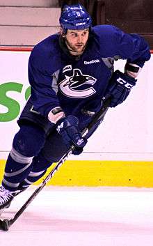 With a shrinking salary cap the Canucks had limited funds to sign new players.[11] Vancouver could not afford to pursue top end free agents like Jarome Iginla or Nathan Horton.[12] Instead they signed less costly restricted free agents Dale Weise, Jordan Schroeder, Kellan Lain, and Christopher Tanev,[13][14] as well as unrestricted free agent players Brad Richardson, Yannick Weber, and Mike Santorelli.[15][16] The Canucks also signed unrestricted free agent Andrew Alberts, after his previous contract with the Canucks had expired at the end of the 2012–13 season.[17] Richardson was brought on as center for one of the bottom two lines in a checking role, and to provide the team with another reliable face-off man.[18] Alberts and Weber were competing in the pre-season for the sixth defenceman spot. Weber was also seen as a possible power play contributor as a right handed defenceman with a hard shot, potentially playing a role similar to that of former Canuck Sami Salo.[19] Santorelli was not expected to make the team initially, but would add depth to the Canucks new American Hockey League (AHL) affiliate, the Utica Comets instead.[20]