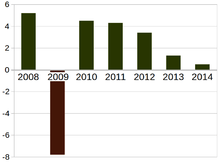 - ↑ Vasilyeva, Nataliya (30 December 2014). "Russian economy shrinks for first time in 5 years". USA Today. Retrieved 3 January 2015.