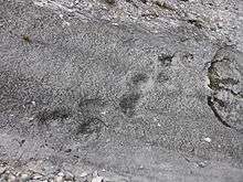 - ↑ Lockley and Meyer (2000); "The Swiss Megatracksite," pages 169–171.