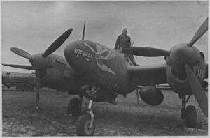 F-5C Lightning 'Dot And Dash' after landing on a shuttle flight to Russia in 1944; this aircraft was shot down 6 October 1944 over IJsselmeer, Netherlands, while assigned to the 22nd.[2]