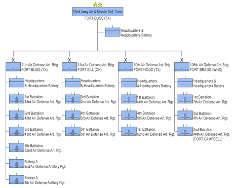 Formerly a provisional organization assigned to U.S. Army Training and Doctrine Command (TRADOC), the 32d Army Air and Missile Defense Command (32d AAMDC), Fort Bliss, TX, officially activated as a theater level command on 16 October 1998. It is assigned to Headquarters, United States Army Forces Command (FORSCOM), per FORSCOM Permanent Orders 271-2 dated 28 September 1998. Effective with the activation, 32d AAMDC assumes "command and control" (C2) of the 11th and the 35th ADA Brigades.
