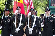 The 333rd FA Battalion was inactivated 10 June 1945 in Germany, while the 333rd FA Group was inactivated at Camp Patrick Henry, Virginia on 30 December 1945.[5] Both the 333rd and 969th FA Battalions were later reactivated, although further reorganizations ensued, with the 333rd FA Battalion renumbered as the 446th FA Battalion. On 1 July 1959 the 333rd FA Group was reactivated as the 333rd Artillery Regiment with the 446th and 969th FA Battalions subordinated to it. On 1 September 1971, the regiment was retitled the 333rd Field Artillery Regiment. Four target acquisition batteries of the 333rd Field Artillery served in Operation Desert Storm in 1991.[6] Today, there is only one target acquisition battery in the Army which still bear the number of the 333rd Field Artillery.