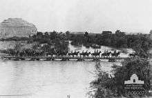 5th Light Horse crossing the pontoon bridge at the Ghoraniye Bridgehead