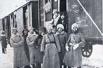 As the forces of the Red Army approached the log jam of trains backed up before Novo-Nikolaevsk (Novosibirsk) in early December, the Poles had to put down a local revolt by White troops. Soon after this the last Polish forces left the area and joined the withdrawal. At Taiga 22 December 1919 the Polish Legion made a stand against the Red Army but were badly beaten losing many of their trains. After this defeat the Polish Legion began to disintegrate. Many of their trains began to break down, and the Poles were forced to abandon them and join the exodus that streamed along the frozen tracks beside the railway. Fights broke out between the Poles, Romanians and Serbs for any engines that still worked. As the remaining trains limped towards Krasnoyarsk, the town was occupied by the Siberian Partisans of Shchetinkin 4 January 1920, even though the Poles still controlled the station. The leading echelons got away but ran out of fuel and supplies at Klyukvennaya (now Uyar) east of Krasnoyarsk. The Czechs were better equipped and strong enough to later fight their way through Kansk to Irkutsk where in conference with the Allies and the new Soviet they were allowed to withdraw without further destruction of the railway (17 February 1920). However the Polish Legion had no choice but to negotiate with the Red Army and asked to be allowed to return to Poland through Russia, but the Bolsheviks demanded that they surrender. Some then mutinied and killed their officers and went over to the Red Army, others who had wives and children surrendered: formal surrender of the remaining 5000 strong force was agreed 8 January 1920, and all the trains that had left Krasnoyarsk were captured by the Reds.[1] The Poles were interned at the Viona Gorodock P.O.W camp at Krasnoyarsk, where many subsequently died in the typhus epidemic that was devastating Siberia at that time. The Soviet authorities put them to work clearing the railway yards of refuse. Others were marched off to perish in forced labour in the mines.[2] Those that survived were later repatriated under the terms of the Treaty of Riga in March 1921.