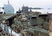 The 741st Tank Battalion was activated at Fort Meade, Maryland, on 15 March 1942. Its initial cadre was formed from members of the 751st Tank Battalion and complemented by draftees.[2] The battalion criss-crossed the country as it moved from one training station to another developing its maneuver and gunnery skills. Training camps included Camp Young, California, Camp Polk, Louisiana, Camp Pickett, Virginia, and Camp Wellfleet, Massachusetts.[3] At Camp Bradford, Virginia, it also began practicing amphibious training, including loading and unloading aboard Navy craft, and practice assault landings at Little Creek, Virginia and Solomons Island, Maryland.[4]