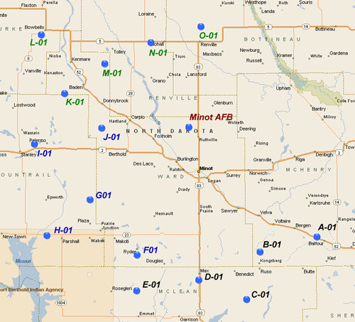 - Kirk, Jim. "Minot AFB Minuteman Missile Site Coordinates". University of Wyoming. Archived from the original on 4 October 2013.