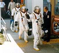 The A7L Apollo & Skylab spacesuit is the primary pressure suit worn by NASA astronauts for Project Apollo, the three manned Skylab flights, and the Apollo-Soyuz Test Project between 1968 and the termination of the Apollo program in 1975. The "A7L" designation is used by NASA as the seventh Apollo spacesuit designed and built by ILC Dover (a Playtex division when the suit was designed). The A7L is a design evolution of ILC's initial design A5L and the A6L, which introduced the integrated thermal and micrometeroid cover layer. After the deadly Apollo 1 fire, the suit was upgraded to be fire-resistant and given the designation A7L.[2][3]
