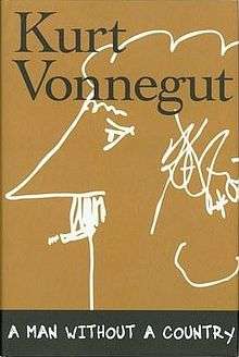A Man Without a Country (subtitle: A Memoir Of Life In George W Bush's America) is an essay collection published in 2005 by the author Kurt Vonnegut. The extremely short essays that make up this book deal with topics ranging from the importance of humor, to problems with modern technology, to Vonnegut's opinions on the differences between men and women. Most prevalent in the text, however, are those essays that elucidate Vonnegut's opinions on politics, and the issues in modern American society, often from a decidedly humanistic perspective.[1] In January 2007, Vonnegut indicated that he intended this to be his final work, a statement that proved to be correct with his death in April 2007.[2] Later published works of Vonnegut's were all published posthumously, and consisted almost entirely of previously unpublished material from early in his career.
