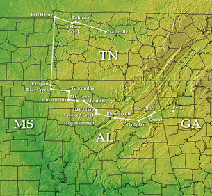 Steight led this force to Nashville, departed Tuscumbia, Alabama, on April 26, 1863, and then to Eastport, Mississippi. From there he decided to push to the southeast, initially screened by another Union force commanded by Brig. Gen. Grenville Dodge. On April 30, Streight's brigade arrived at Sand Mountain, where he was intercepted by a Confederate cavalry force under Brig. Gen. Nathan Bedford Forrest and harassed for several days. Streight's force won the Battle of Day's Gap but the battle set off a series of skirmishes that eventually led the Union forces being surrounded and captured.[3] Streight himself was captured and taken to Libby Prison as a prisoner of war.