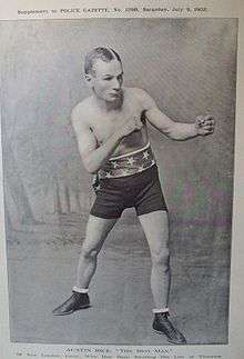 - Austin Rice, former World Championship Featherweight contender, exhibition for "Nest of Owls order 1382", New London CT. January 17, 1911[96]