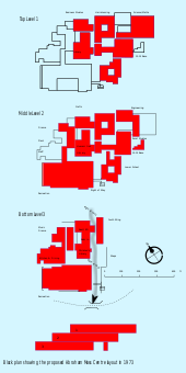 The Moss was designed between 1968 and 1970 by the DES Development Group, the principal architects being David and Mary Medd, Michael Hacker and Ian Fraser.[19] A significant choice as David and Mary Medd have been leading school architects for 40 years. The curriculum was intended to align to the design of the centre. This was envisages as a network of multidisciplinary centres, an idea, that through their work at Maiden Erlegh, springs from a recommendation in the Newsom Report pages 46–48. The 24,000 m² complex was a low and compact 3 storey CLASP network, lit by small courtyards with 25 dispersed entrances linked by high level footbridges with an 'internal street'. Each component still had to satisfy multiple design regulations. The lower school was designed to provide a sheltered and identifiable environment for younger pupils (year 7-year 8). There were four centres or bases for smaller groups of 120 pupils and their five principal teachers who worked in a team to deliver resource based multidisciplinary project based work. The bays were 90% self-sufficient, and the lower school had its own hall and dining area with pullman style bays to further satisfy design requirements and shelter the pupils.[19]