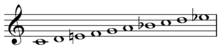 It adds flats as it goes higher, and its pitch set is similar to the Persian Dastgāh-e Māhur and Russian Obikhod scale.