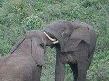 Elephants use some vocalisations that are beyond the hearing range of humans,[20] to communicate across large distances. Elephant mating rituals include the gentle entwining of trunks.[21]