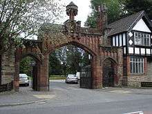Near the entrance is a stone memorial to the seven-man crew of Lancaster bomber PB304 which crashed in Regatta Street, off Langley Road, Agecroft, Pendlebury very close to the then boundary between Pendleton, Salford and Pendlebury on 30 July 1944 carrying a full bomb load.[3] [4]
