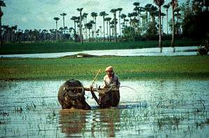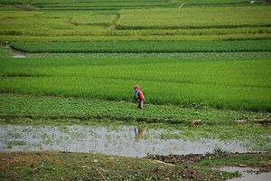 In addition to these two regular crops, peasants plant floating rice in April and in May in the areas around the Tonle Sap (Great Lake), which floods and expands its banks in September or early October. Before the flooding occurs, the seed is spread on the ground without any preparation of the soil, and the floating rice is harvested nine months later, when the stems have grown to three or four meters in response to the peak of the flood (the floating rice has the property of adjusting its rate of growth to the rise of the flood waters so that its grain heads remain above water). It has a low yield, probably less than half that of most other rice types, but it can be grown inexpensively on land for which there is no other use.