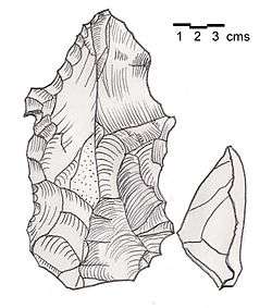 The sites were found in neogene conglomerates above the 200 metres (660 ft) contour on Louis Dubertret's geological map and mentioned by R. Wetzel and J. Haller in 1945.[2] The materials found were described as "Gros bifaces" along with other roughouts. The tools were originally classified as Chelleo-Acheullean however Lorraine Copeland suggested them reclassified as a Heavy Neolithic assemblage of the Qaraoun culture in light of more modern research.[1]