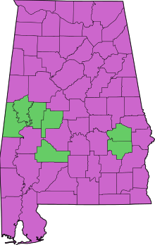 Purple denotes a county carried by Wallace, and Green by Flowers.