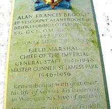- ↑ "Alanbrooke, FM Alan Francis, 1st Viscount Alanbrooke of Brookeborough (1883–1963)". Liddell Hart Military Archives. Retrieved 10 March 2016.
