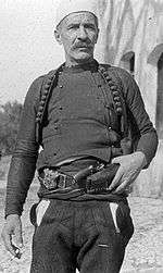 In 1910 due to the new centralization policies of the Young Turk Ottoman government towards Albanians[32] Albanian nationalists Isa Boletini and Idriz Seferi started an uprising against the Ottomans in the Kosovo vilayet. After subduing the Ottoman garrisons in towns such as Prishtina and Ferizaj, the Ottoman government declared martial law and sent a military expedition of 16,000 men led by Shefqet Turgut Pasha[33] Simultaneously forces under Idriz Seferi captured the Kaçanik pass. They successfully defended the pass from the Ottoman expeditionary force thus, forcing them to send a force of 40,000 men.[33] After two weeks the pass was lost to the Ottomans[34] After fierce fighting, the rebels retreated to Drenica and the Ottoms seized control of Prizren, Gjakova and Peja[35] Afterwards Ottoman forces incurred into Northern Albania and Macedonia. Ottoman forces were stopped for more than 20 days in the Agri Pass, from the Albanian forces of Shalë, Shoshë, Nikaj and Mërtur areas, led by Prel Tuli, Mehmet Shpendi, and Marash Delia. Unable to repress their resistance, this column took another way to Scutari, passing from the Pukë region.[35] On July 24, 1910, Ottoman forces entered the city of Scutari. During this period martial courts were put in action and summary executions took place. A large number of firearms were collected and many villages and properties were burned by the Ottoman army.[36]