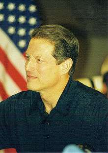 Gore was initially hesitant to accept a position as Bill Clinton's running mate for the 1992 United States presidential election, but after clashing with the George H. W. Bush administration over global warming issues, he decided to accept the offer.[30] Clinton stated that he chose Gore due to his foreign policy experience, work with the environment, and commitment to his family.[71][72]