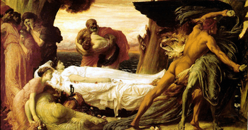 Act 1- At the wedding of Admetus and Alcestis. Under the guise of a party, Lycomedes abducts Alcestis. A following storm, perpetrated by his sister, the sea nymph Thetis, helps his escape.