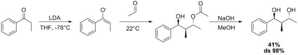 - ↑ Paul M. Bodnar, Jared T. Shaw, and K. A. Woerpel (1997). "Tandem Aldol–Tishchenko Reactions of Lithium Enolates: A Highly Stereoselective Method for Diol and Triol Synthesis". J. Org. Chem. 62 (17): 5674–5675. doi:10.1021/jo971012e. Supporting information