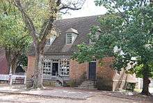 Purdie owned a residence in colonial Williamsburg on a half-acre lot. The legal description of its location is Block 9 Lot 24 and is known further today as building 28A.[2] The house was reconstructed by the Colonial Williamsburg Foundation based on the original underground foundation.[2] It is located on the south side of Duke of Gloucester Street next to the King Arm's Tavern about a block from the Capitol.[2] Purdie purchased the Williamsburg lot and house from the estate of Joanna McKenzie in 1767 with a Dr. James Carter being the administrator. He paid "300 pounds current money of Virginia."[2] The lot already had by 1707 "one good dwelling house thereon."[7] Purdie lived in the house and ran a store that sold yarn goods and wearing apparel from it.[7]