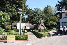 The main house is in the center of the property. It contains seven rooms dedicated to the showing of various pieces related to watercolor as well as an intact study. The seven rooms are arranged by chronological order beginning from the pre-Hispanic period until the present day with both Mexican and international watercolor art.[7] The base of this collection are 300 watercolors which were donated by Guati Rojo and his wife when the museum was founded.[4] Although western watercolor painting has its origins in Asia,[1] the pre-Hispanic room is included as many clay vessels were painted with paints made from water and natural pigments. These same paints were used to create codices, which were used into the early colonial period as a form of record keeping. The room after this focuses on 19th century work, with miniature portraits on ivory and paper, as well as works done by travelers who used the medium to record images of the places they visited.[1][2] The rest of the space is dedicated to more modern works. In addition to Guati Rojo’s own works, which fill two rooms, others include “Mujer Indígena” by Pastor Velázquez, “Amapolas” and “Bahia de Habana, Cuba” by Manuel M. Ituarte, as well as several works by Eduardo Solares and Leandro Izaguirre .[1]