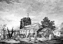 By the 18th century the south aisle was in a serious state of decay, and in 1740 it was rebuilt in brick.[5] In 1801 a commission reported that the church "was too small to conveniently contain the inhabitants of the parish".[6] It was extended by enlarging the south aisle and by adding galleries to it and to the west end. The former Gothic windows were replaced by round-headed windows.[6] During the first half of the 19th century there was increasing concern about the fabric of the church. The tower was becoming dangerous, and the vestry gave orders "that the bells were not to be rung".[7] In 1817 it was recommended that the height of the tower should be reduced. The south wall of the chancel was leaning and only kept in position by its roof. The south aisle, built only 15 years before, was sinking, and gaps were appearing around the windows. It was concluded that the church should be demolished and replaced. Some temporary repairs were carried out but there was insufficient money available to rebuild the church at that time.[8] In July 1843 it was reported that the church was in a "very dangerous condition", and calls were made for "necessary repairs to be made forthwith".[9] By December of that year architectural reports had been obtained from the architectural firm of Scott and Moffatt, and from Anthony Salvin, both of which concluded that the church was beyond repair.[10] In September 1846 the last sermon was preached from the medieval church,[11] and by November contracts for building a new church were completed.[12]