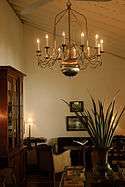 Some of the walls are said to be made of sandstone and 1 metre (3 ft 3 in) thick and the ceiling to many of the rooms are about 6 metres (20 ft) in height.[9] There are a total of 33 rooms and suites, as of 2009,[9] some of the suites have been designed by combining several old rooms. The entry to the hotel is through the Great Hall, called "Zaal" by the Dutch, which is a Dutch colonial legacy. The hall has a high ceiling which is fronted by a shuttered verandah that faces a street with an avenue of trees. The dining hall, furnished with period furniture, provides all meals including Sri Lankan dishes, all served in traditional antique silverware.[10]