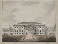Study of the south facade of the White House, ca. 1817. (note the presence of central stairs and the absence of the Truman Balcony).