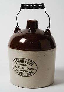 - ↑ "Red Wing bailed jug with Jacob Esch advertisement". MNHS Collections.