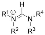 - Guanidines — a similar group of compounds where the central Carbon is bonded to three Nitrogens.