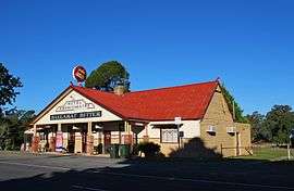 Gold was discovered in the area in 1853, and a settlement was established at Amphitheatre as a result.[2] It was originally located further south of its current location, in the natural amphitheatre after which it is named.[3] A Post Office opened on 22 June 1859.[4] The Avoca-Ararat railway, which opened in 1890, included a station at Amphitheatre. The station was closed, along with the line, in 1959. The coming of the railway led to the township being relocated nearer to it and to the main road, now called the Pyrenees Highway. A plaque has been placed at the original location as the only reminder of the first town site.[3]
