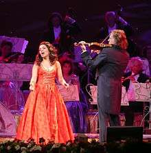 André Léon Marie Nicolas Rieu (born 1 October 1949) is a Dutch violinist and conductor best known for creating the waltz-playing Johann Strauss Orchestra. Together they have turned classical and waltz music into a worldwide concert touring act, as successful as some of the biggest global pop and rock music acts.[2] For his work, Rieu has been awarded such honours as the Order of the Netherlands Lion by the Netherlands, the Knight of the Ordre des Arts et des Lettres by France, and the Honorary Medal by his native Province of Limburg.