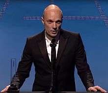 Andy Nicholson receiving 2014 Art Directors Guild award for Gravity