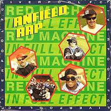 "Anfield Rap (Red Machine in Full Effect)" was a song released by members of Liverpool F.C. before the 1988 FA Cup Final against Wimbledon F.C.. The song reached number 3 in the UK Singles Chart. The song was co-written by Liverpool's midfielder Craig Johnston, rapper Derek B[1] and Mary Byker from Gaye Bykers on Acid.[2]
