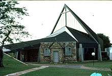 The present cathedral was completed in 1977 on the site of the previous building, incorporating the surviving porch of the old church. The porch had been constructed in 1944 by the Australian Navy. The back wall of the new octagonal building was formed from reclaimed stone from the old church. Many of the treasures of the original building were recovered and repaired.[2]